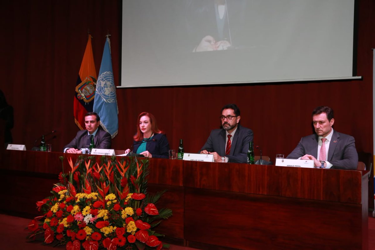 En el auditorio de @ciespal se realizó la presentación de la gestión de la Canciller @mfespinosaEC en el ámbito de inserción estratégica de Ecuador en el mundo, Cooperación, Movilidad Humana, Fortalecimiento de las Relaciones Bilaterales. #LlevamosEcuadorAlMundopic.twitter.com/nxBl5a52sl