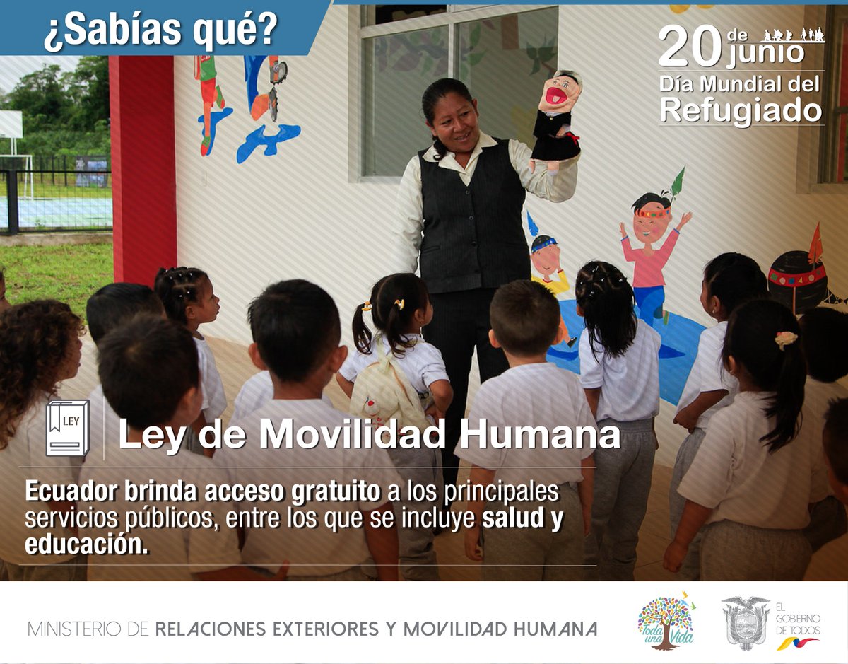 #DíaDelRefugiado | Ecuador brinda a refugiados acceso gratuito a los principales servicios públicos como salud y educación.