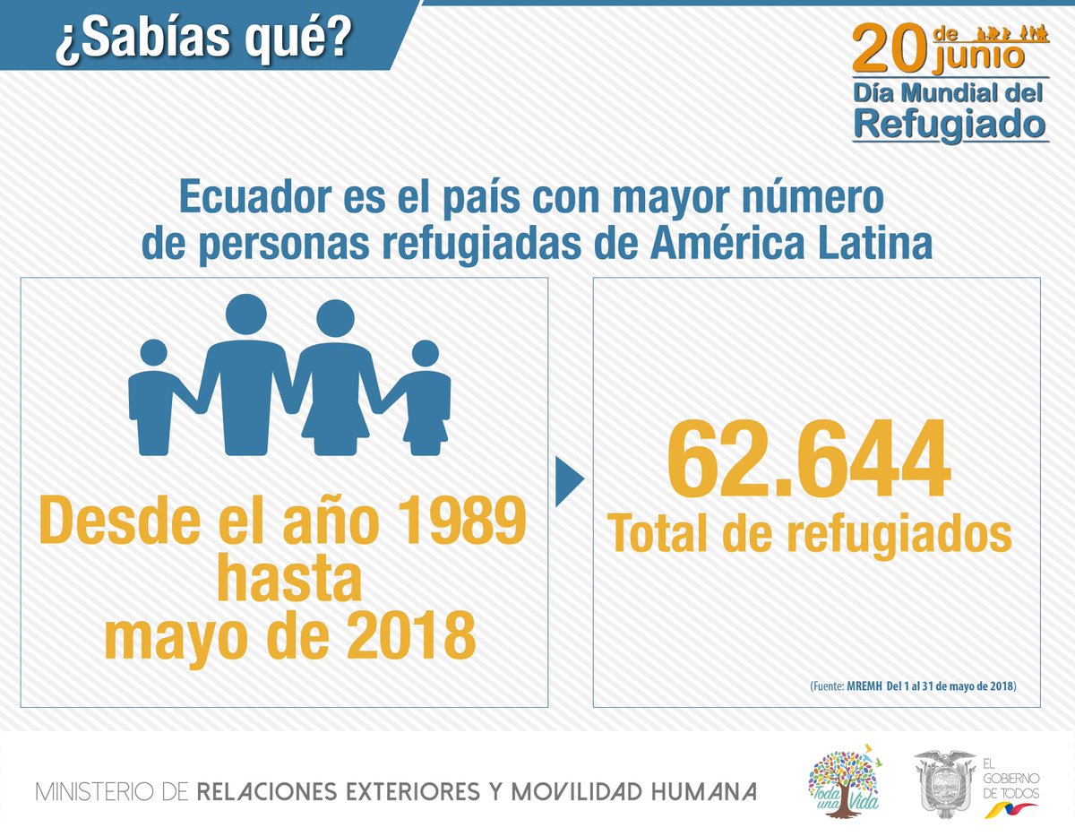 ¿Sabías que Ecuador 🇪🇨 es el país con mayor número de refugiados de América Latina? #ConLosRefugiados #DíaDelRefugiadopic.twitter.com/Mrc984Dff5
