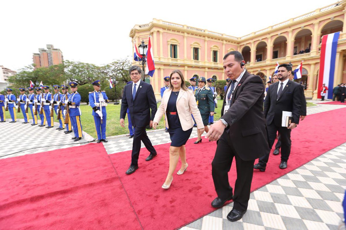 Vicepresidenta @marialevicuna junto al Canciller @ValenciaJoseEc saludaron oficialmente al presidente de Paraguay @MaritoAbdo, en el marco de la ceremonia de traspaso de mando presidencial. #TraspasoDeMandoPy #CambioDeMandoPY