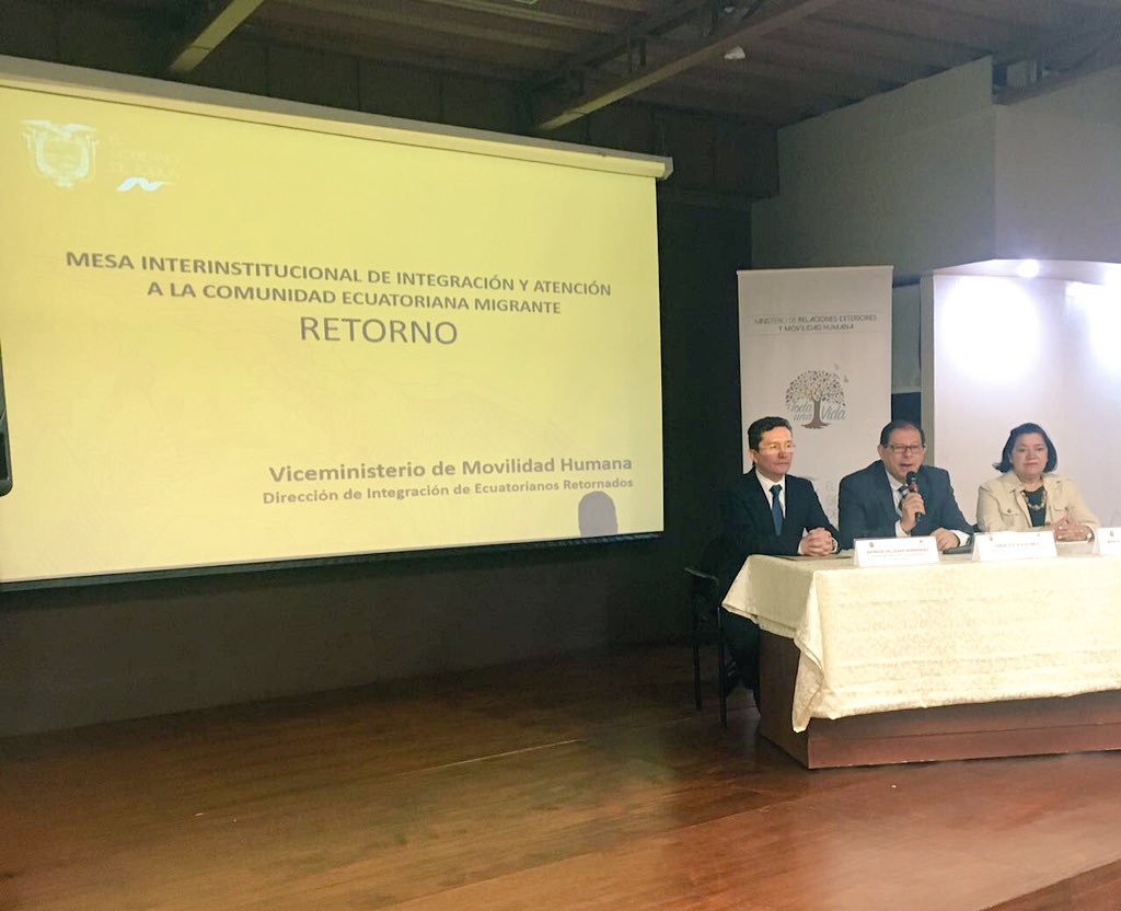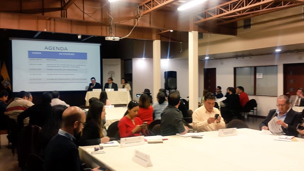Embajador Jorge Icaza, subsecretario de la Comunidad Ecuatoriana Migrante da inicio a la reunión interinstitucional en la que se plantearán compromisos en beneficio de los #MigrantesRetornadosEcpic.twitter.com/JBiETcKuFs