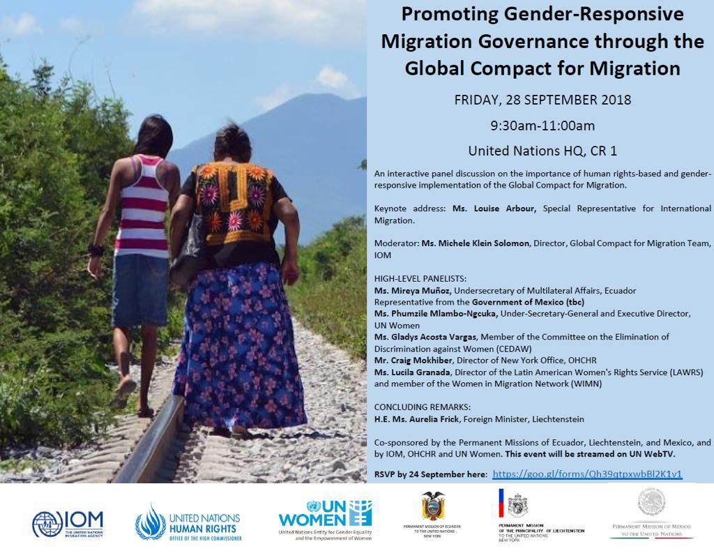 Embajadora Mireya Muñoz, subsecretaria de Asuntos Multilaterales de @CancilleriaEc participará en el panel "Promover una gobernanza de la migración que tenga en cuenta las cuestiones de género", este viernes, 28 de septiembre, en la sede de Naciones Unidas. #UNGApic.twitter.com/ZPaxRfAto3