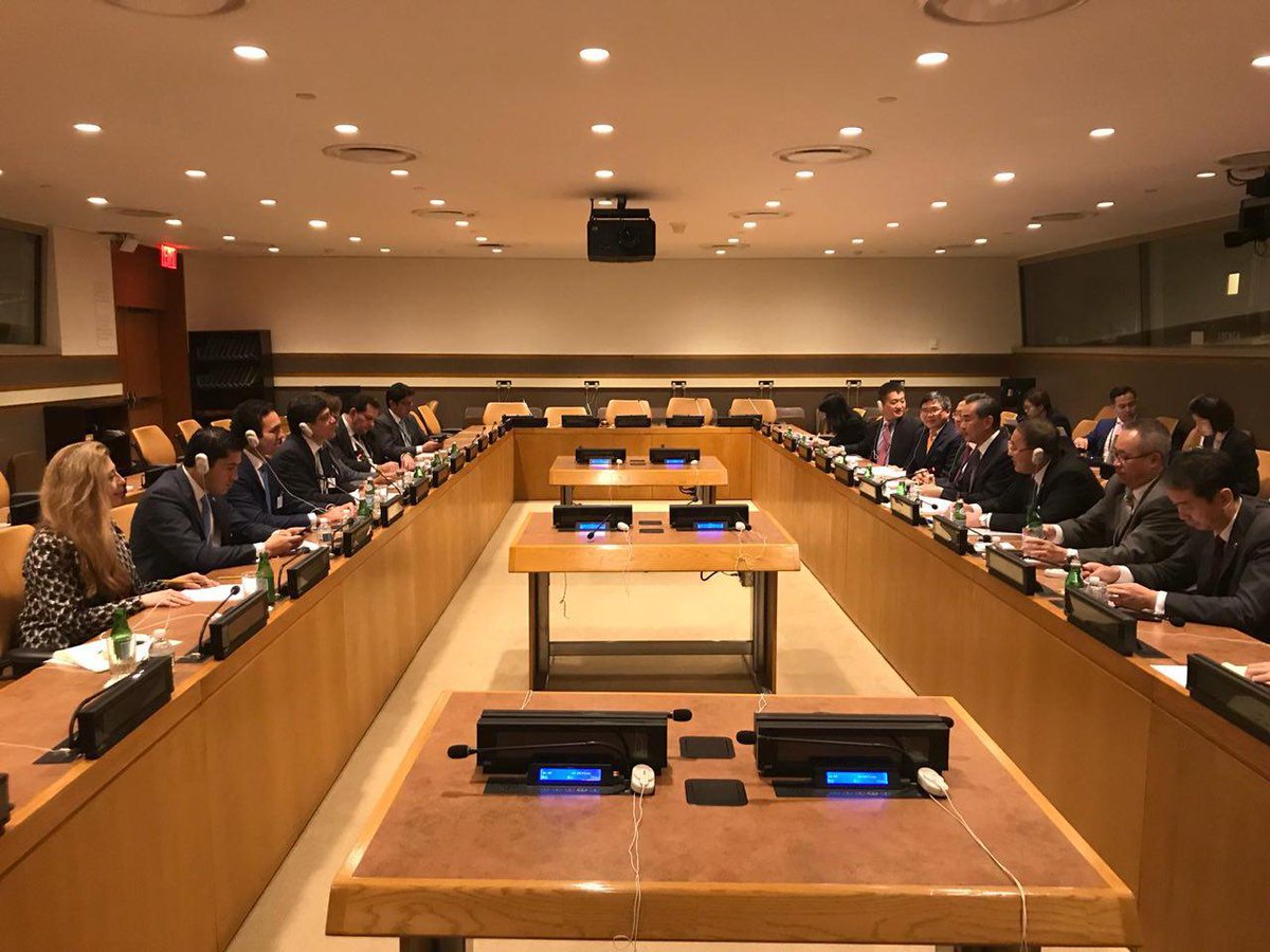 Canciller @ValenciaJoseEc mantiene una reunión bilateral con su homólogo de China, Wang Yi, y su delegación. En el encuentro se profundiza en el diálogo político, inversiones y cooperación mutua. #UNGA77 #EcuadorVisitaEEUUpic.twitter.com/mUBh0jDUd2
