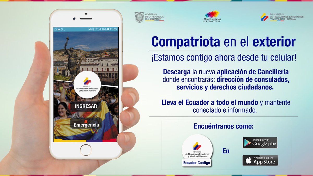 Compatriota en el exterior descarga la aplicación Ecuador Contigo y encuentra toda la información sobre los servicios consulares y la dirección del consulado del Ecuador más cercano. #EcuadorConmigopic.twitter.com/aNp4AaqOQJ