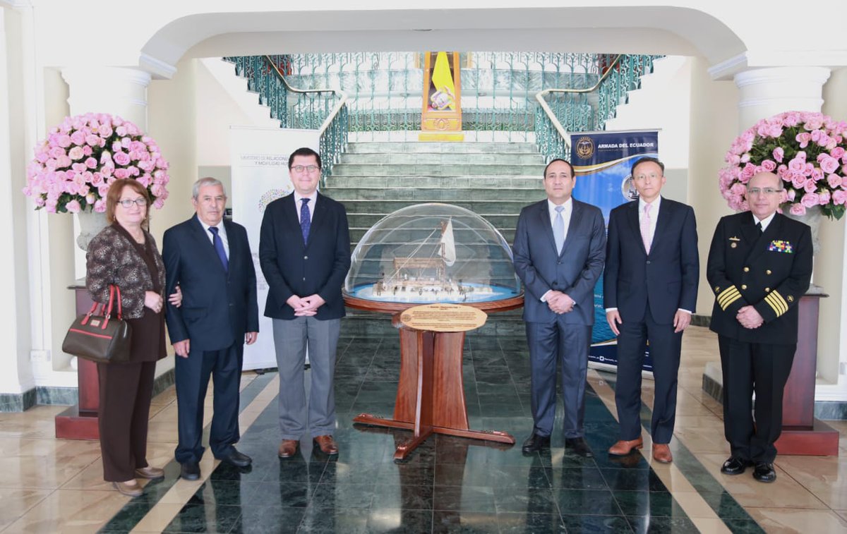 .@DefensaEc entrega a la Organización Marítima Internacional #OMI, una réplica de la balsa Manteño- Huancavilca, como un obsequio representativo a la presencia marítima de nuestros pueblos. La ceremonia simbólica se lleva a cabo en @CancilleriaEc.pic.twitter.com/pMds84Cfhm