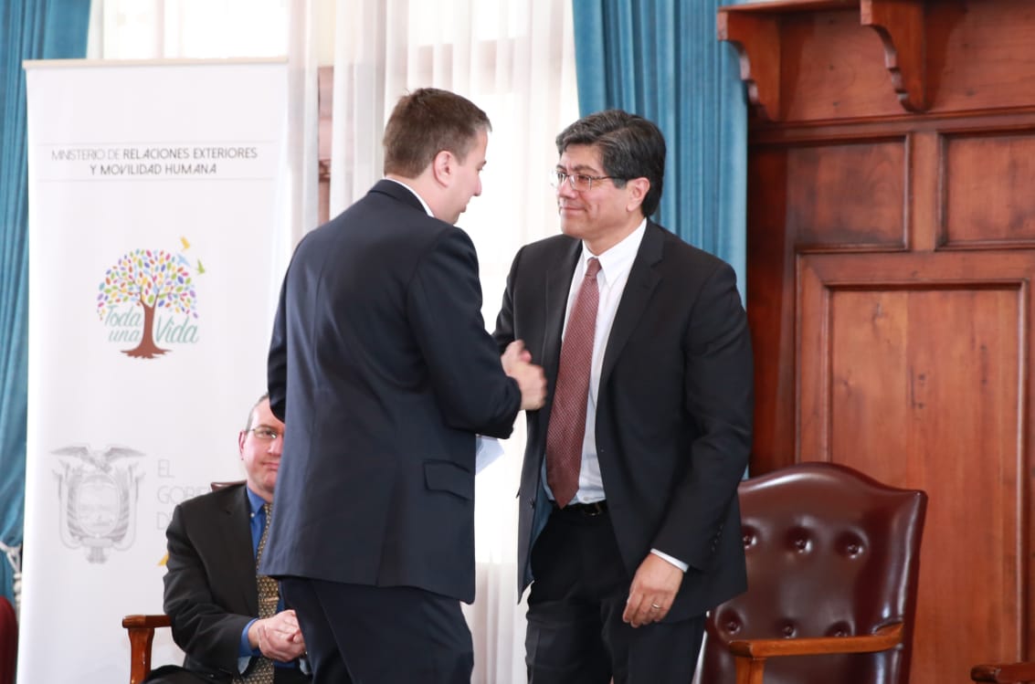 Esteban Coello agradece al Canciller @ValenciaJoseEc por restituir al servicio exterior al cónsul ecuatoriano Antonio Muñoz Borrero, quien es recordado por su gran labor humanitaria, durante la Segunda Guerra Mundial. #HomenajeMuñozBorreropic.twitter.com/hs6vhLErjT