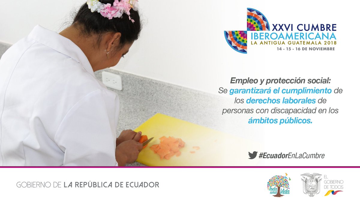 En cuanto a la línea de acción que se refiere a empleo y protección social se garantizará el goce pleno de los derechos laborales de las personas con discapacidad en el ámbito público y privado, articulando las iniciativas en materia de inclusión laboral. #EcuadorEnLaCumbrepic.twitter.com/GaI9M2fEhM