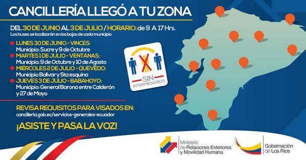 #Cancilleriaentuzona estará mañana en Ventanas. ¡Asiste y recibe información, asesoría y servicios ! @Gober_LosRiospic.twitter.com/A2oNCtK33h