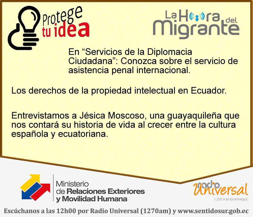 Hoy no te pierdas un programa más de #LaHoradelMigrante Escúchanos a las 12h00 por: http://www.sentidosur.gob.ec pic.twitter.com/NJJIXPXQ6v