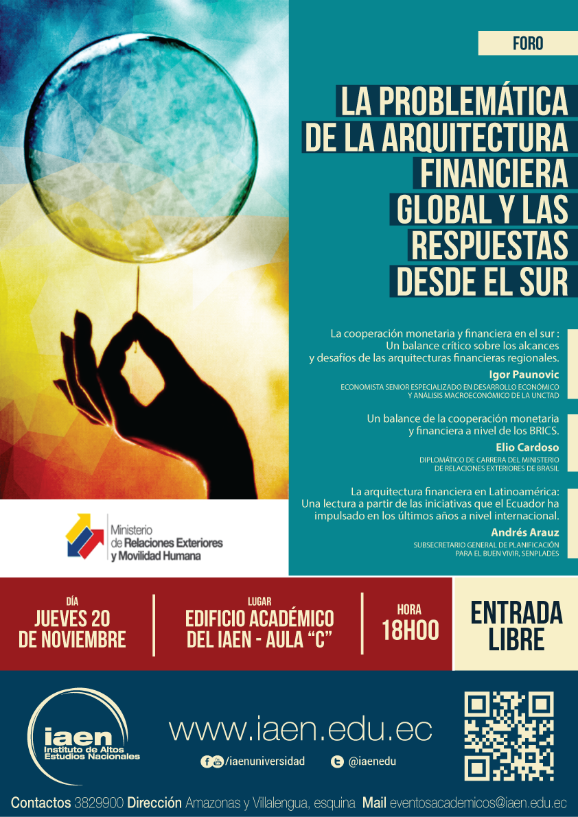 Foro sobre Iniciativas de Cooperación Financiera y Monetaria desde el Sur. Jueves, 20 noviembre a las 18h en @IAENEDUpic.twitter.com/vmt0y9djfM
