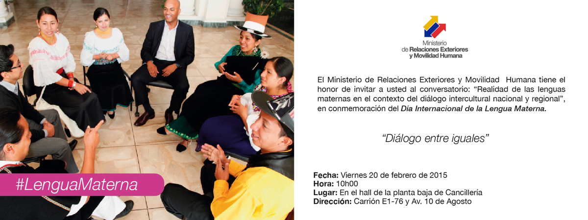 Conversatorio: Diálogo entre Iguales. Hoy 10h00 con motivo del Día Internacional de la #LenguaMaterna ¡Te esperamos!pic.twitter.com/KKkGgR3Cou