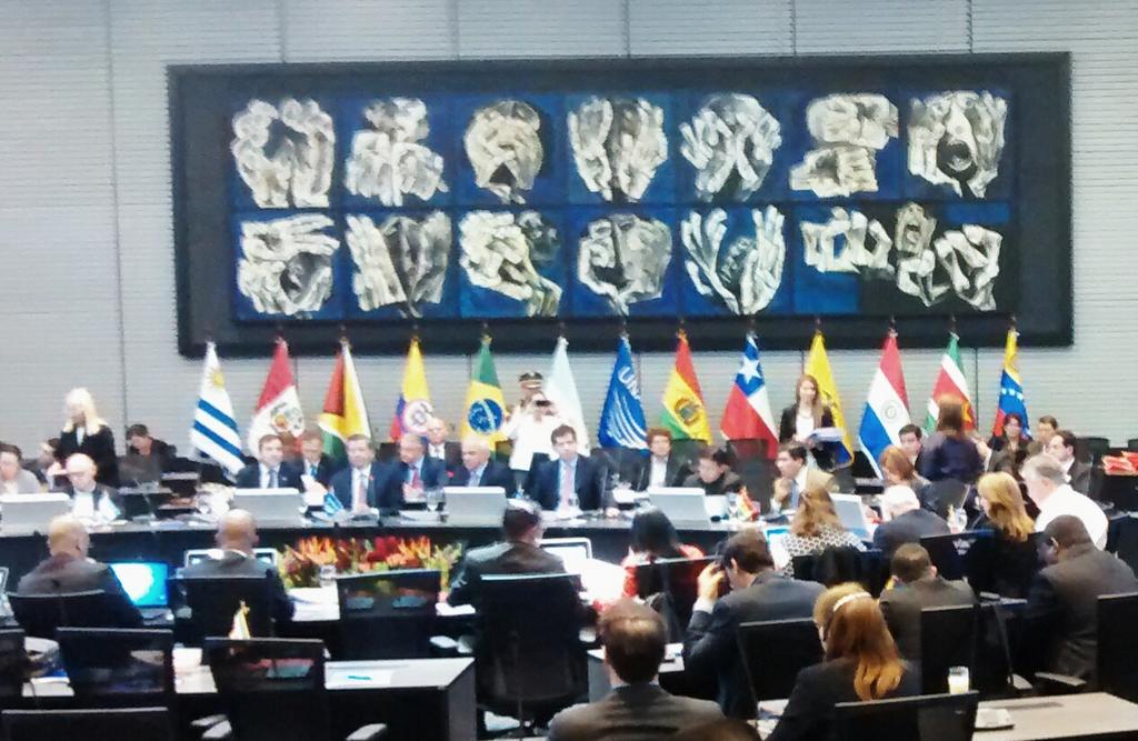 La defensa de la paz, la democracia y la unión de países de #Unasur principios que resaltan al iniciar #ReuniónUnasurpic.twitter.com/4NZutJAgW2