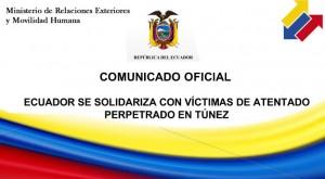 #Ecuador se solidariza con víctimas de atentado perpetrado en #Túnez: http://goo.gl/t8WMJu pic.twitter.com/RpRFd0MVtH