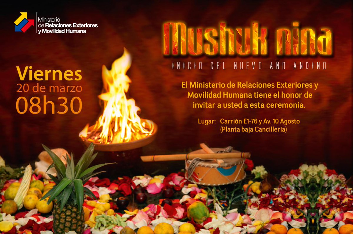 Invitamos a la celebración del Nuevo Año Andino: #MushukNina . Mañana, 08h30 en @CancilleriaEc ¡Te esperamos!pic.twitter.com/8T49t6ddip
