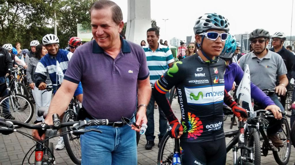 Canciller @RicardoPatinoEC participa en estos momentos en cicleada junto a ministras del sector social. #RCSocialpic.twitter.com/zgowMtM3HF