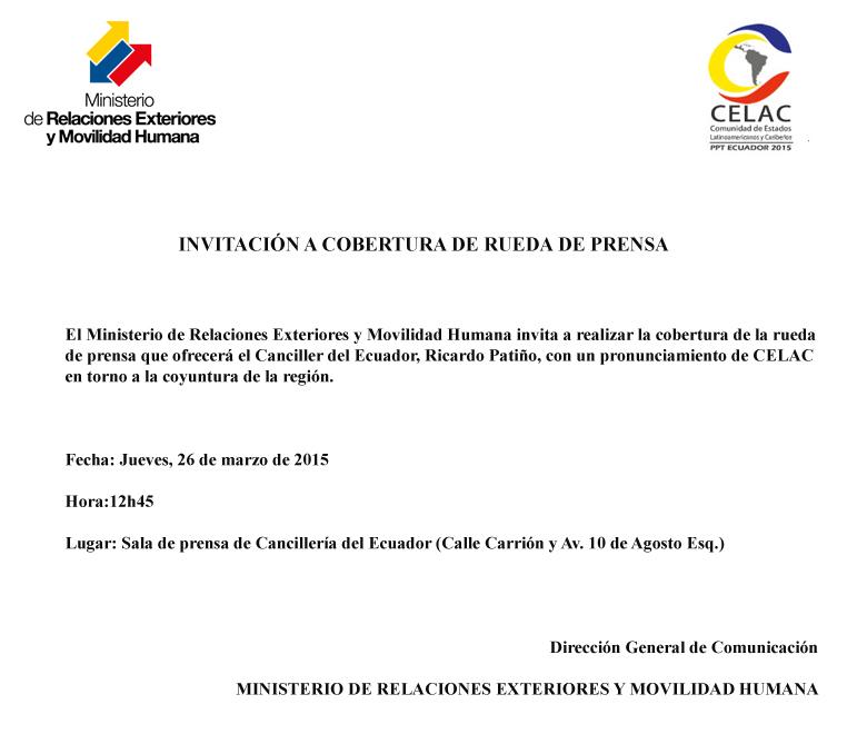 Canciller @RicardoPatinoEC ofrecerá rueda de prensa sobre pronunciamiento de #CELAC. Hoy - 12h45 en @CancilleriaEcpic.twitter.com/QWM5xq6pqq