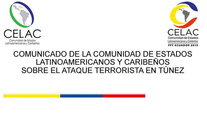 Comunicado de #CELAC sobre el ataque terrorista en #Túnez http://bit.ly/1HQNWFk #CelacEcuadorpic.twitter.com/uBZMMuOcE0