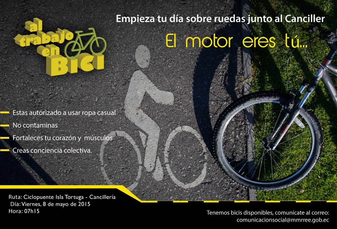 Vamos juntos #AlTrabajoenBici Te esperamos mañana 07h15 en el ciclopuente de la Isla Tortuga. ¡Acompáñanos!pic.twitter.com/Wxg1hcVaQM