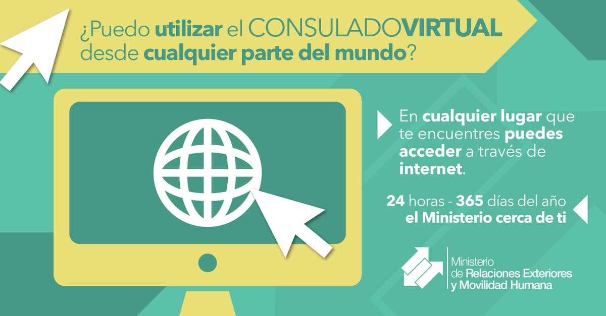 Accede desde cualquier parte del mundo a los #ServiciosCancillería con el #ConsuladoVirtual http://www.consuladovirtual.gob.ec pic.twitter.com/UPuRRdJvWi