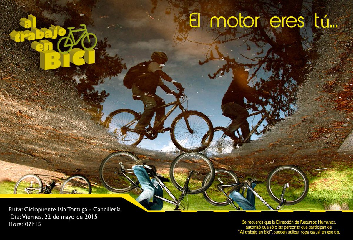 Vamos juntos mañana #AlTrabajoEnBici Te esperamos 7h15 en el ciclopuente de la Isla Tortuga ¡Únete a esta iniciativa!pic.twitter.com/ZzTDfq8tqI