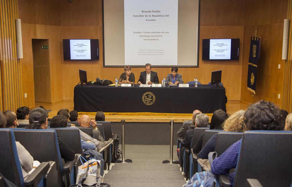 Canciller @RicardoPatinoEC dialoga con intelectuales y personalidades mexicanas en la #UNAM http://goo.gl/R3oO9K pic.twitter.com/n7RCOiGPDM