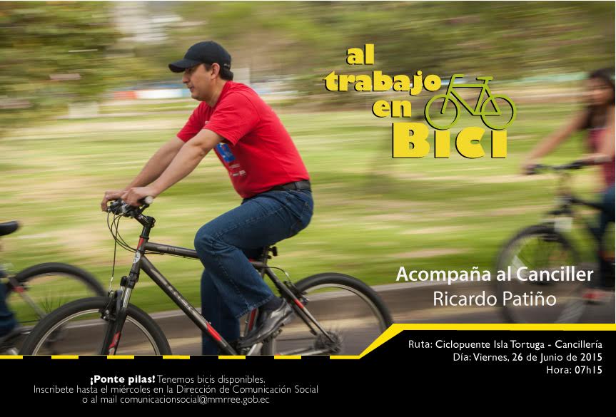 Acompáñanos mañana a ir #AlTrabajoEnBici salimos de Isla Tortuga a las 07h15 y vamos a @CancilleriaEc ¡Te Esperamos!pic.twitter.com/kezWBBBJqC