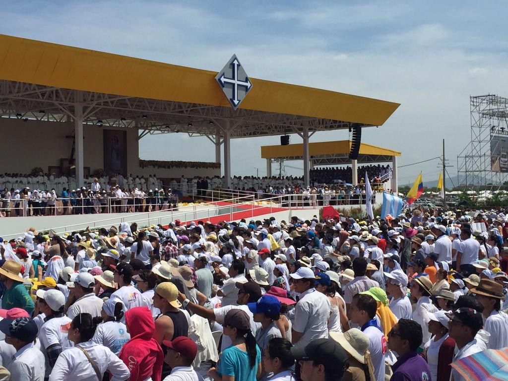 Papa Francisco realiza recorrido en el papamóvil, entre miles de feligreses en el parque #Samanes #FranciscoenEcuadorpic.twitter.com/J9mUfst6Af