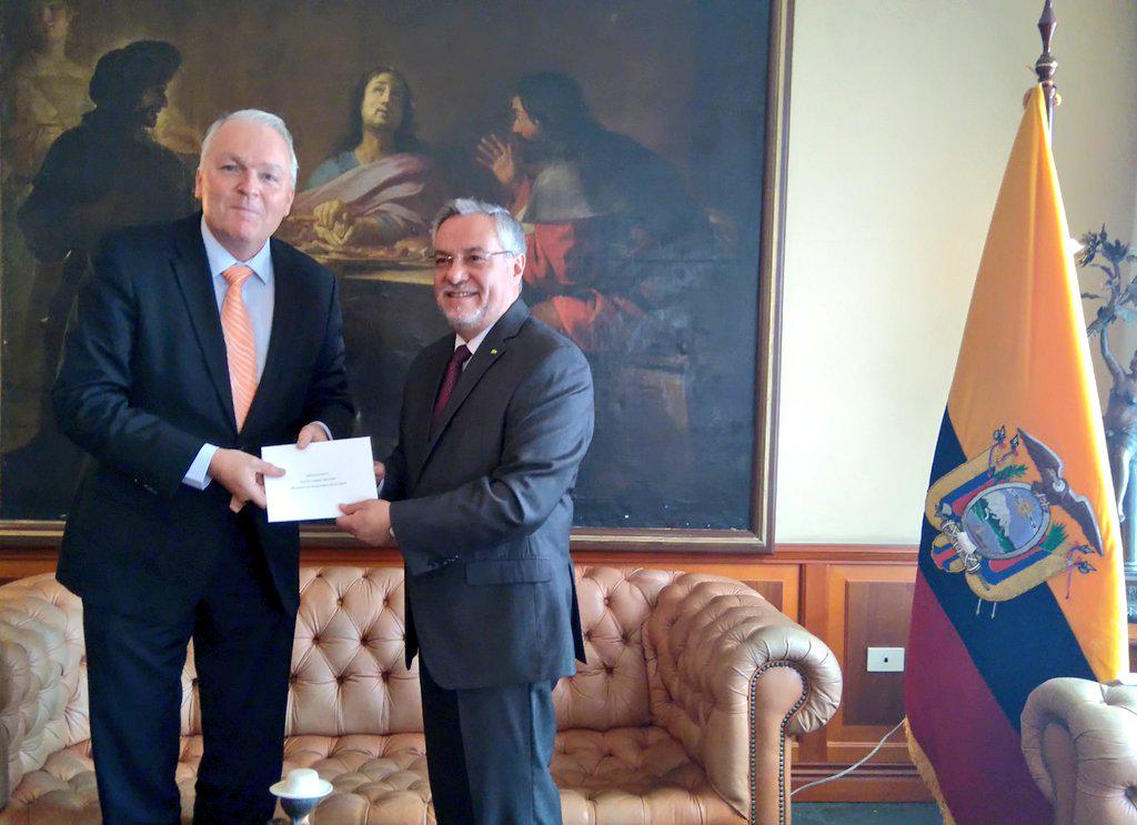 Embajador de #PaísesBajos entrega copias de cartas credenciales en @CancilleriaEc a embajador Lautaro Pozo.pic.twitter.com/vVbGr05teA