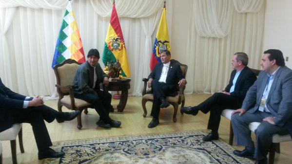 Canciller @RicardoPatinoEC acompaña a Presidente @MashiRafael en #EncuentroBilateral con mandatario #EvoMoralespic.twitter.com/igRHooG4EE