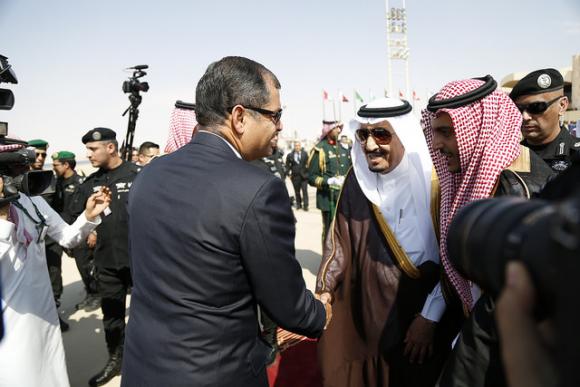 Rey de Arabia Saudita recibe al presidente ecuatoriano en el marco de la Cumbre ASPA http://bit.ly/1HubFzO pic.twitter.com/T0OiLotUSl