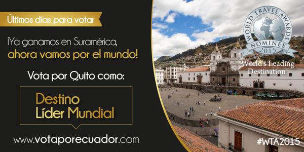 Vota por #Quito por la categoría "Destino Líder Mundial" http://votaporecuador.com #WTA2015 ¡Solo falta un día!pic.twitter.com/L28teqp3uj