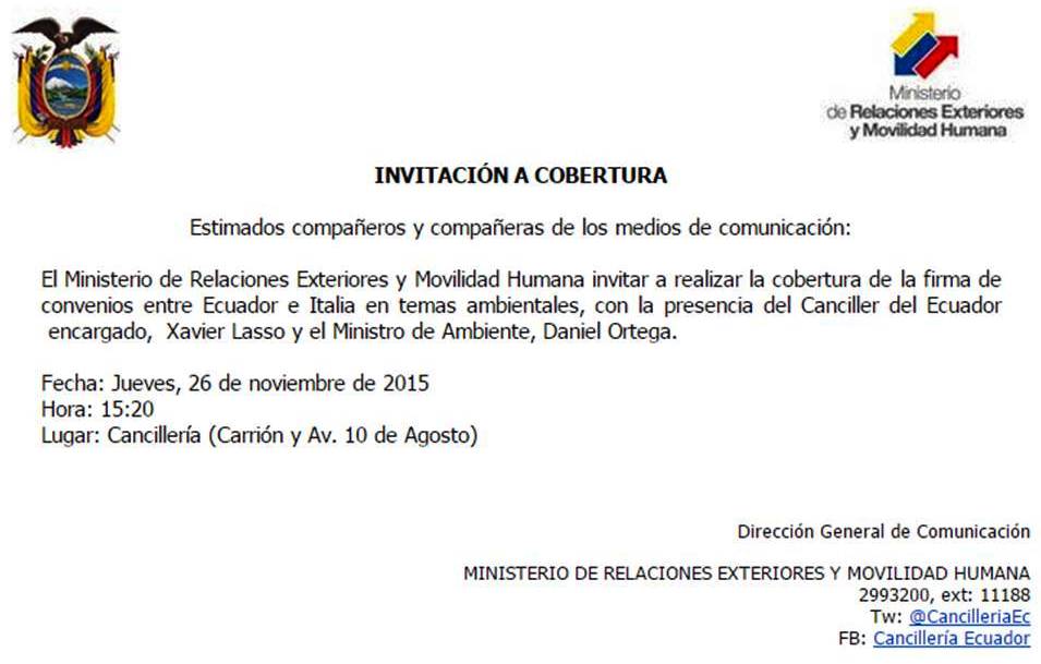 IMPORTANTE ➔ Firma de convenios entre #Ecuador e #Italia en temas ambientales. Hoy a las 15h30 en @CancilleriaEcpic.twitter.com/mFtE7WcGlW