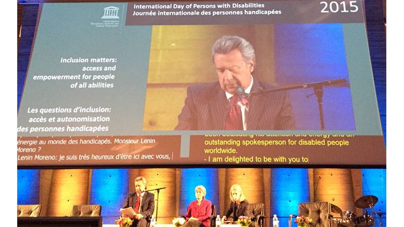 #LenínMoreno interviene en @UNESCO por el Día Internacional de las Personas con Discapacidad http://bit.ly/1lyJFB2 pic.twitter.com/LxeAuYWne9