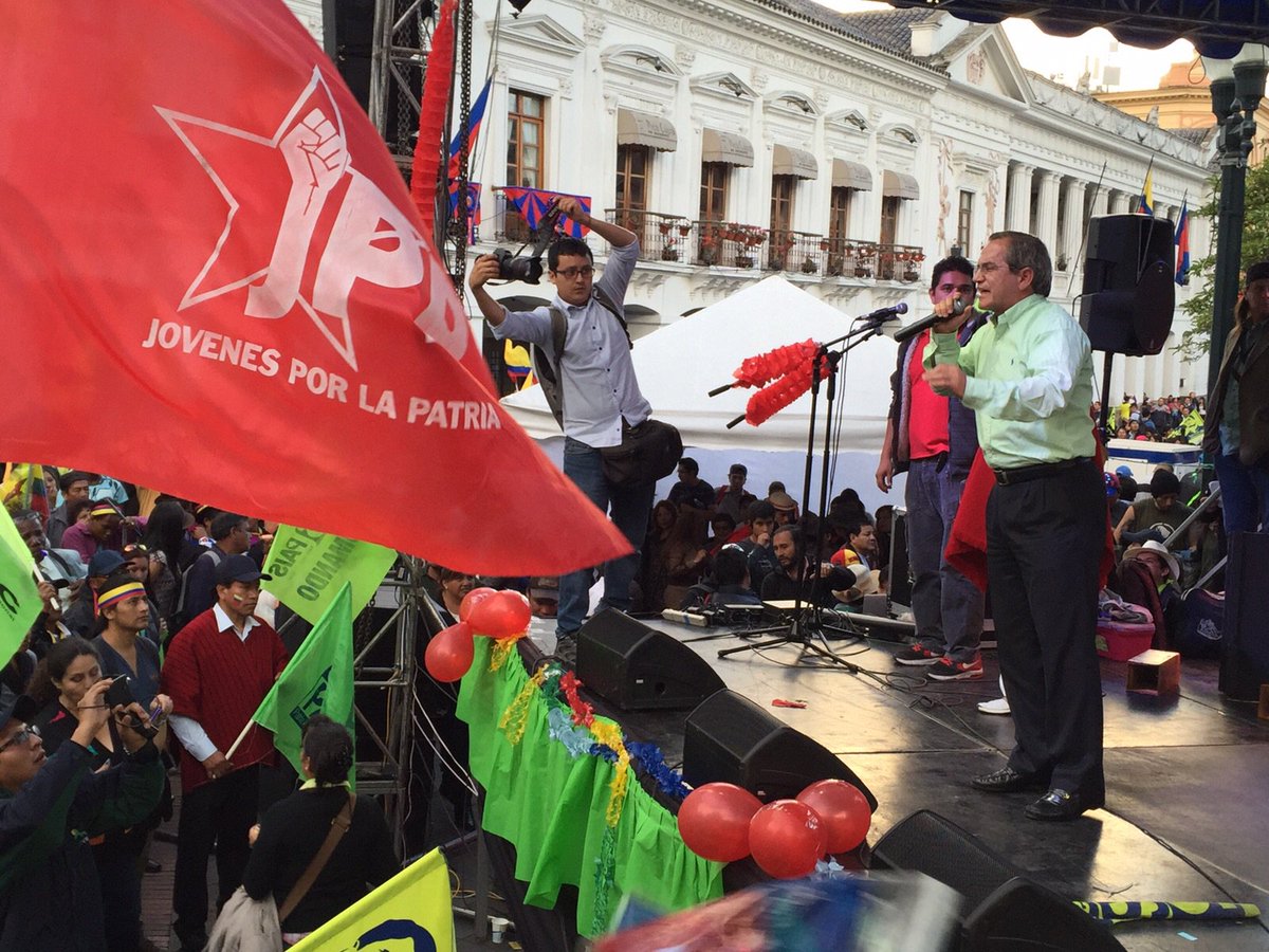Canciller @RicardoPatinoEC interviene en este momento en la tarima en la plaza grande #EnmiendasPorUnaPatriaMejor pic.twitter.com/FlrsrVUJKg