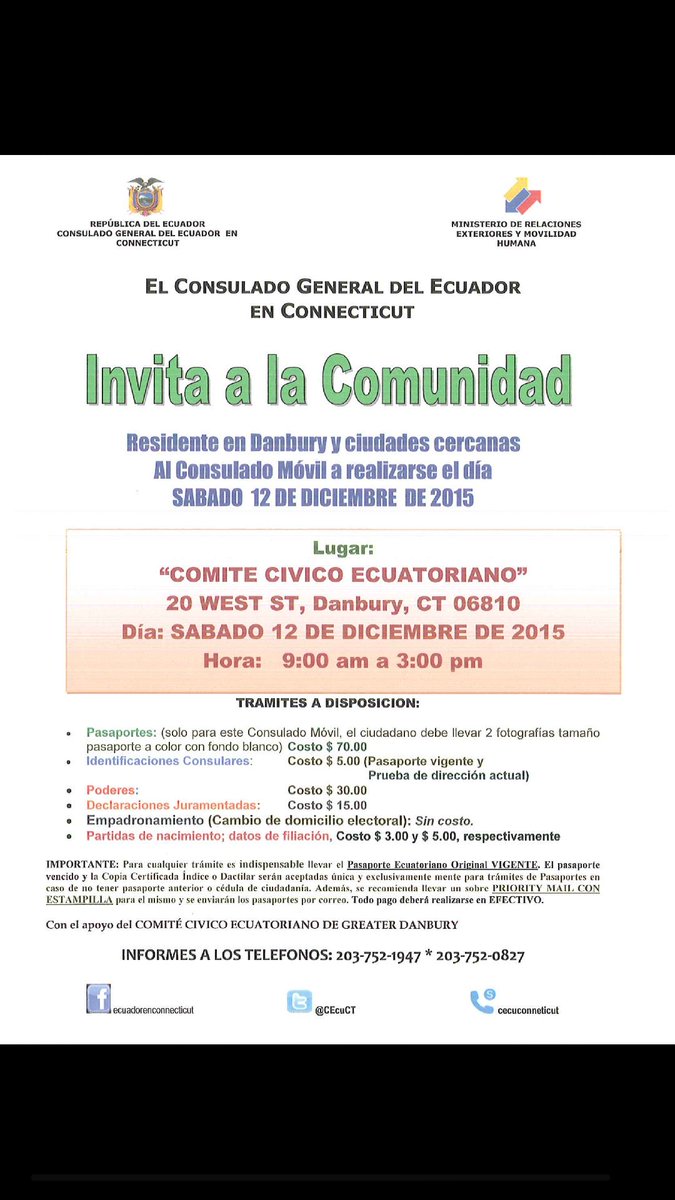 Compatriota en #EEUU asiste al #ConsuladoMóvil en #Danbury. Sábado, 12 diciembre - 9h00 en Centro Cívico Ecuatorianohttps://twitter.com/CEcuCT/status/674249430900543488 …
