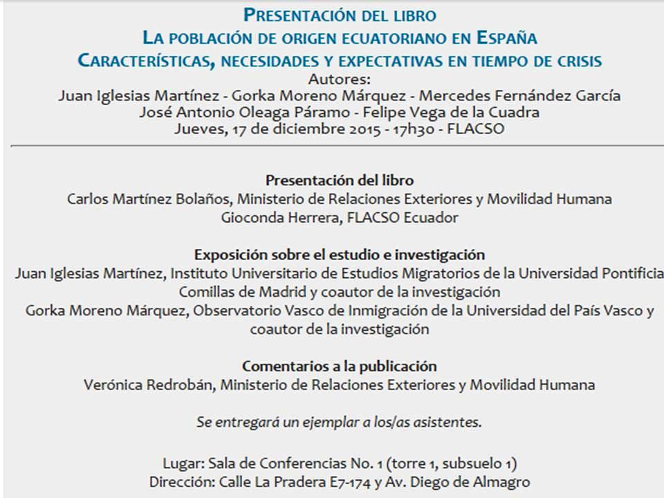 Presentación del libro: "La población de origen ecuatoriano en España". Jueves, 17 de diciembre - 17h30 en @FLACSOecpic.twitter.com/VYEJN0ItCW