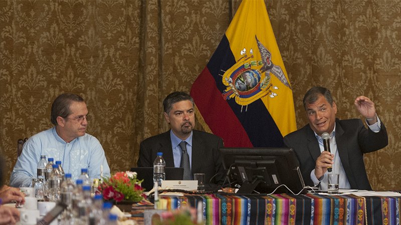 Canciller @RicardoPatinoEC participó en conversatorio de medios con Presidente @MashiRafael http://bit.ly/1T68vFQ pic.twitter.com/EElkLbKPsX