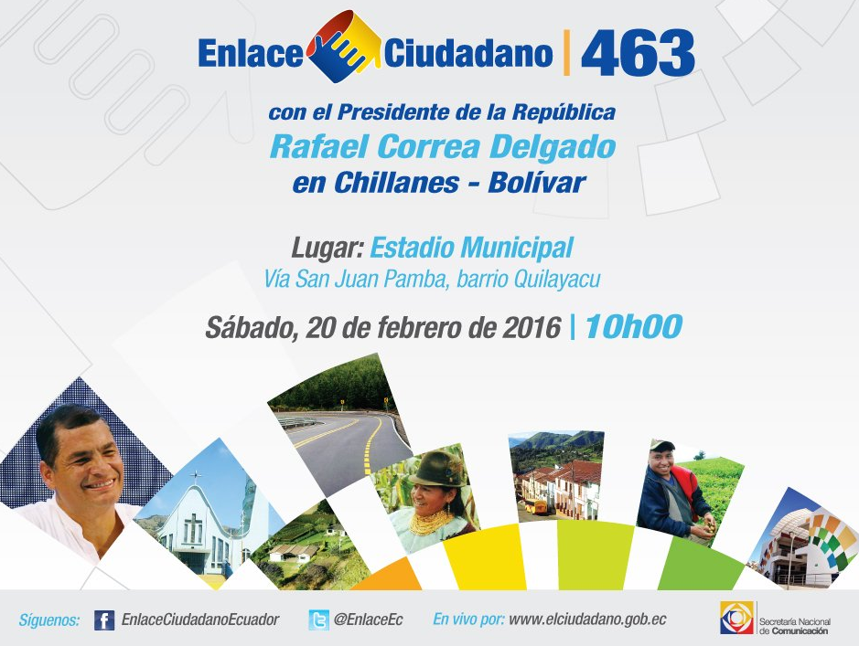 Siga en este momento en vivo el #Enlace463 con el Presidente @MashiRafael por: http://www.cancilleria.gob.ec pic.twitter.com/CEWr8RClLc