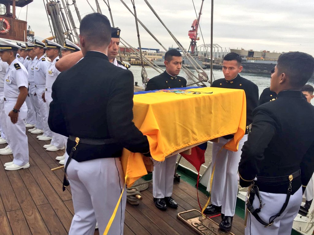 A bordo del #BuqueEscuelaGuayas retornarán a #Ecuador desde Perú, los restos del Obispo José de Cuero y Caicedo.pic.twitter.com/XQzaCyoeDm