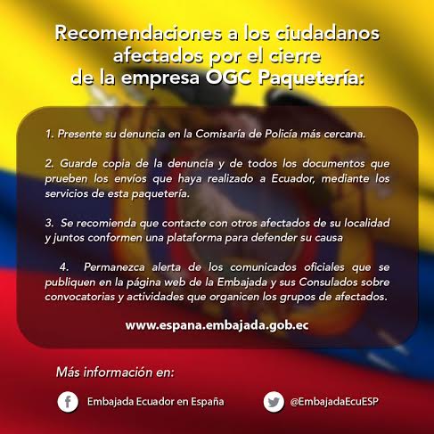 Recomendaciones de la @EmbajadaEcuESP a compatriotas afectados por la empresa OGC #CasoOGCpic.twitter.com/7I8SXbZnh6