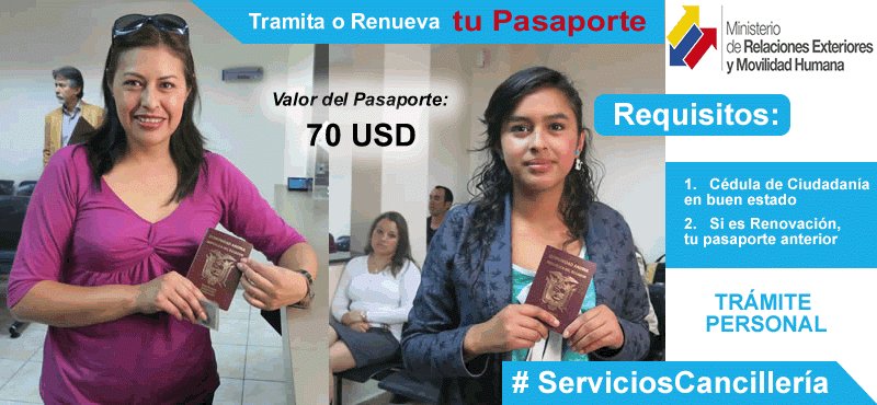 Recuerda que puedes obtener tu pasaporte de 8h30 a 16h30 en nuestras oficinas a nivel nacional #ServiciosCancilleríapic.twitter.com/Rx44wmJTzN
