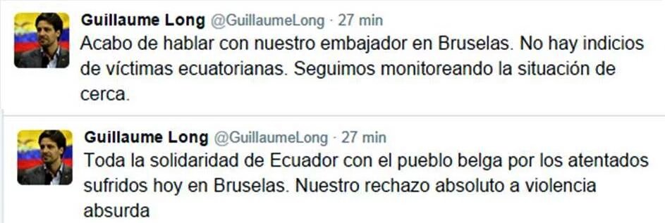 #Bruselas | Canciller @GuillaumeLong confirma que no hay “indicios de víctimas ecuatorianas” @CancilleriaEcpic.twitter.com/Jd9sl73rrw