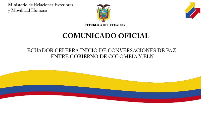 #Ecuador celebra inicio de conversaciones de paz entre Gobierno de #Colombia y #ELN http://bit.ly/25wNvh3 pic.twitter.com/yooS3s29s5