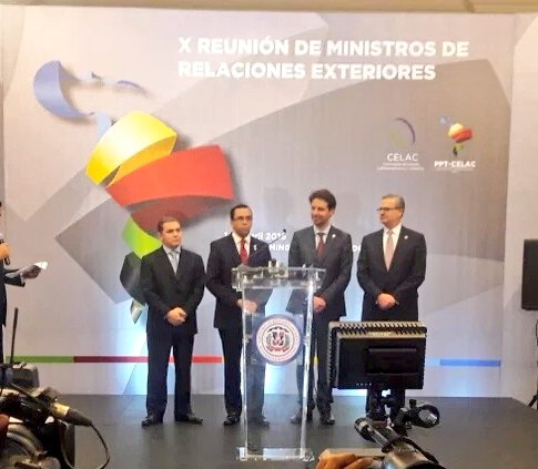 Cuarteto de Celac ofreció rueda de prensa con conclusiones de #XReuniónRDCELAC llevada a cabo hoy en Rep. Dominicanapic.twitter.com/2XQGGcLb7l