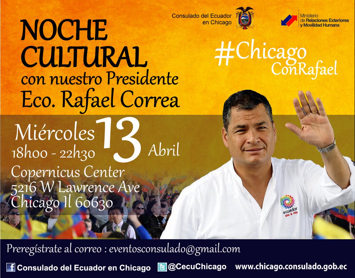 Presidente @MashiRafael se reunirá con comunidad ecuatoriana en #Chicago. Miércoles, 13 de abril - 18h ¡No faltes!https://twitter.com/CecuChicago/status/717722812358590465 …