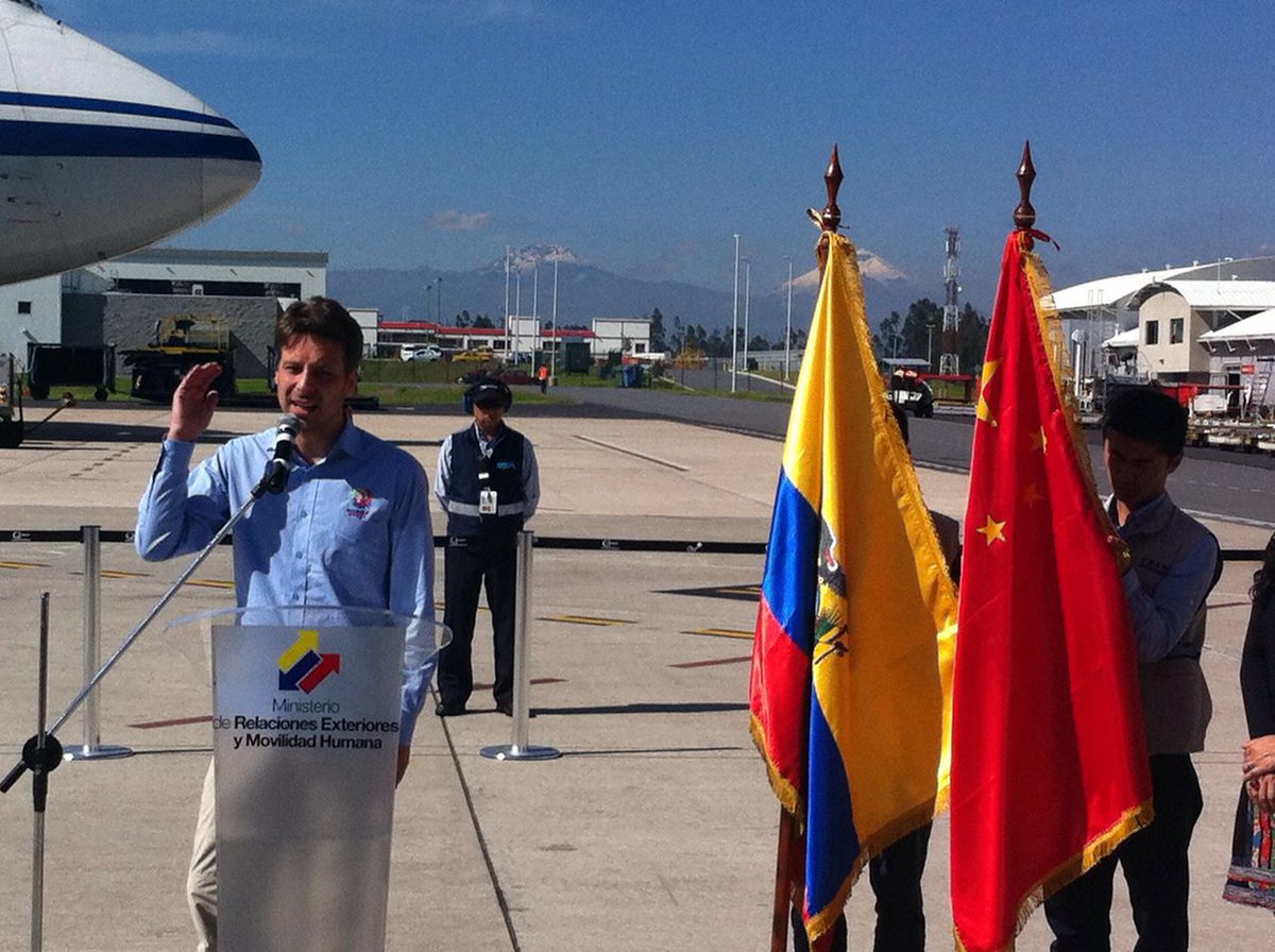 Arribó el primero de 5 aviones de ayuda humanitaria de China "Ecuador les agradece" @GuillaumeLong #UnidosPorEcuadorpic.twitter.com/42orHiSZPv