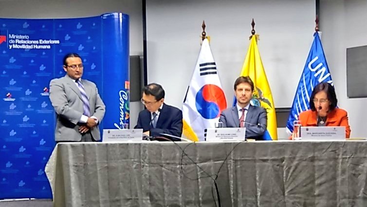 En este momento se procede a la firma de entrega de la ayuda humanitaria por parte de Corea a Ecuador. #SismoEcuadorpic.twitter.com/97jLIf0Oko