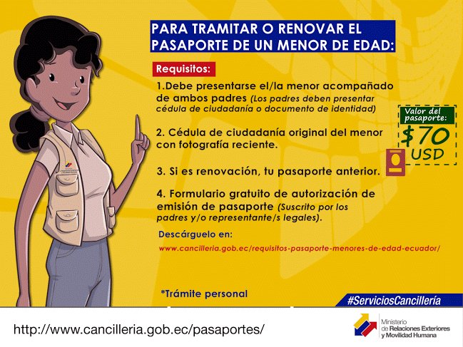 Conoce los requisitos para la emisión del pasaporte ecuatoriano para menores de edad ⇨ http://bit.ly/1Ee8CoG pic.twitter.com/mRT0BbBqlV