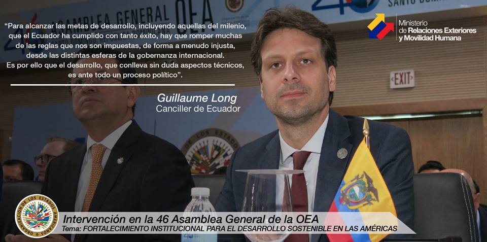 "El desarrollo es un proceso político" enfatizó el Canciller @GuillaumeLong en su intervención hoy en #AsambleaOEApic.twitter.com/N3ZDoLhDp4