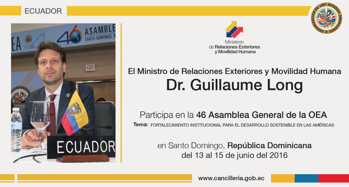 .@GuillaumeLong intervendrá en instantes en Cuarta Sesión Plenaria de #AsambleaOEA. Sígalo ► http://cancilleria.gob.ec pic.twitter.com/BFKVJ9zVMJ